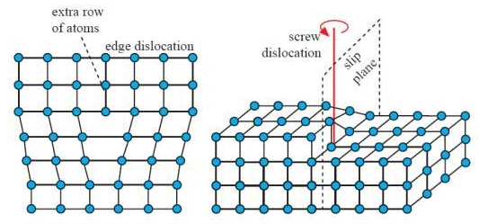 ▲图1 晶格缺陷的某些形式。左侧的晶格有额外塞入的原子,右侧的晶格出现了扭曲。